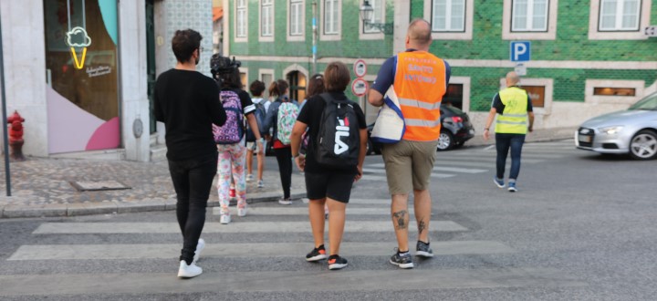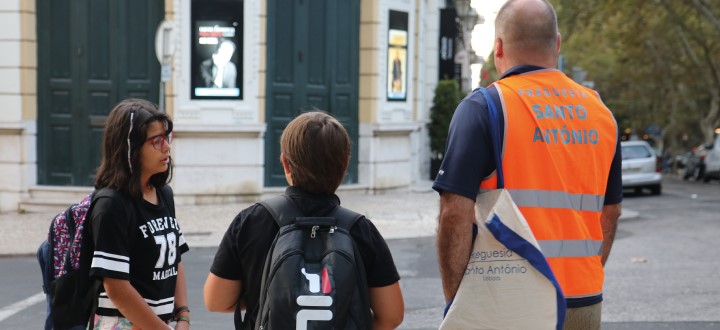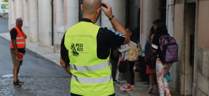 Enquanto grande parte da cidade está a acordar, já Gonçalo, Emília e outros jovens, encontram-se nas novas paragens que a Freguesia de Santo António ganhou, desde o dia 13 de setembro de 2019, com o programa de mobilidade escolar – o PEDIBUS.